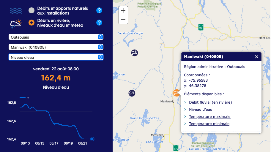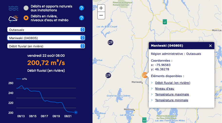 - Débit (mcs) vs Niveau (m) vs Échelle